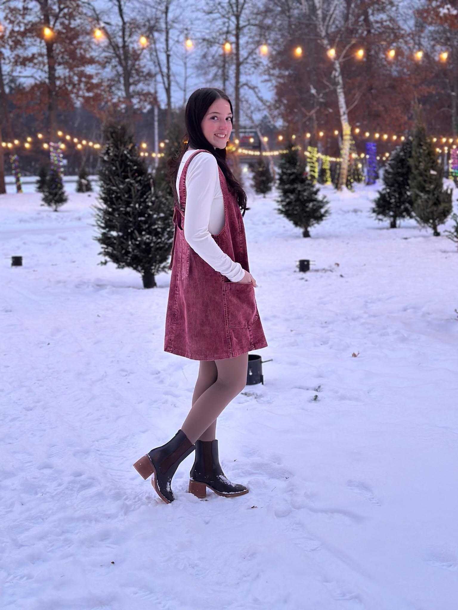 The Snow Wash Corduroy Pinafore Overall Dress brings a playful twist to a timeless classic. Made from 100% cotton, this mini dress features a soft, snow-washed corduroy texture that gives it a vintage-inspired look and feel. Its overall-style straps and easy fit make it perfect for layering over your favorite tees or turtlenecks. Effortlessly cute and comfortable, it’s a must-have piece for creating casual, laid-back outfits all season long. Add to cart and make it your new everyday favorite.