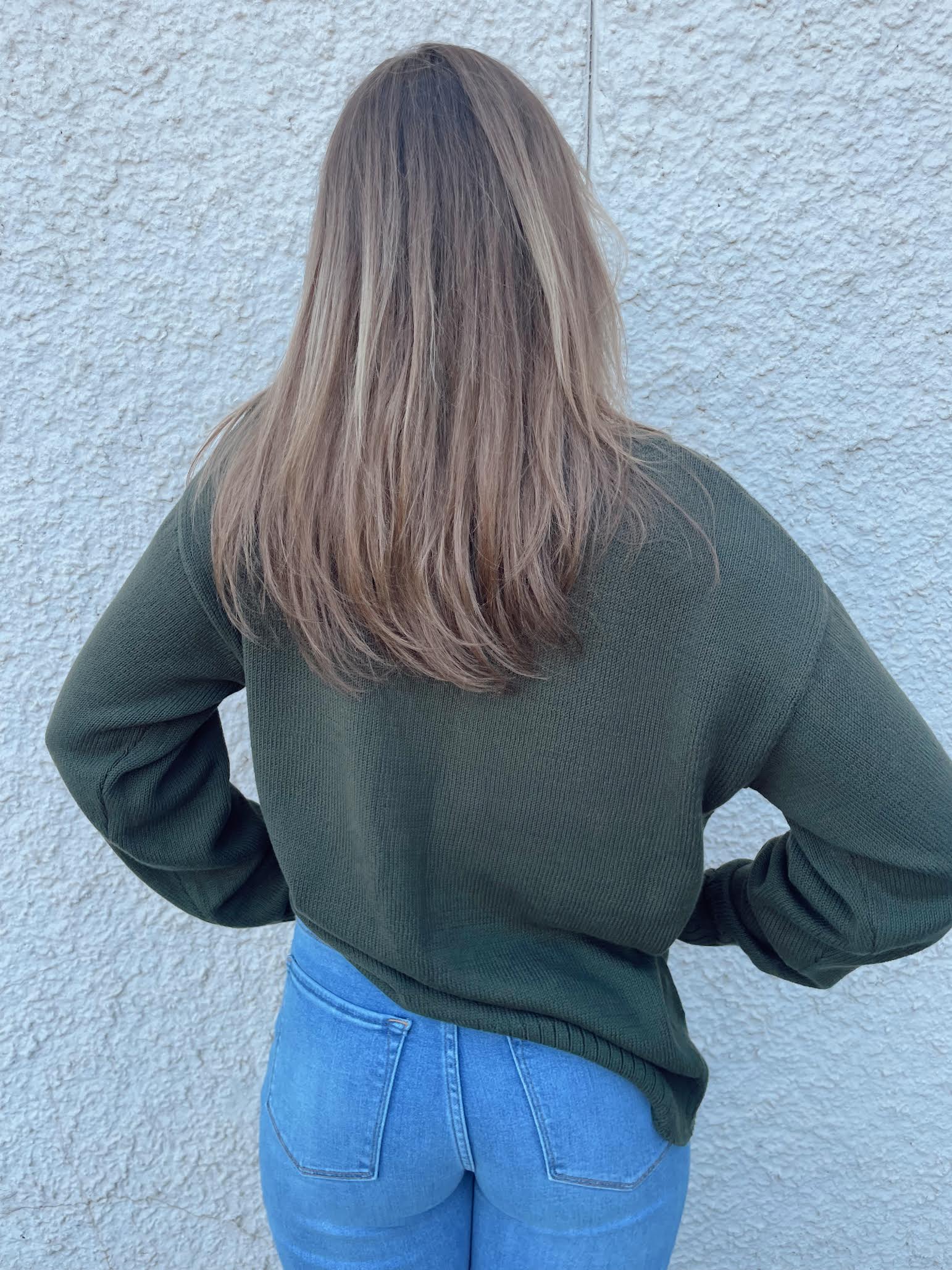 This is the classic V-neck sweater your fall wardrobe’s been waiting for. Made from a thick, cozy knit, it’s warm enough to wear solo on crisp days or layer over your favorite tees and tanks. The relaxed fit and timeless neckline make it effortlessly easy to style — from casual mornings to fireside evenings.