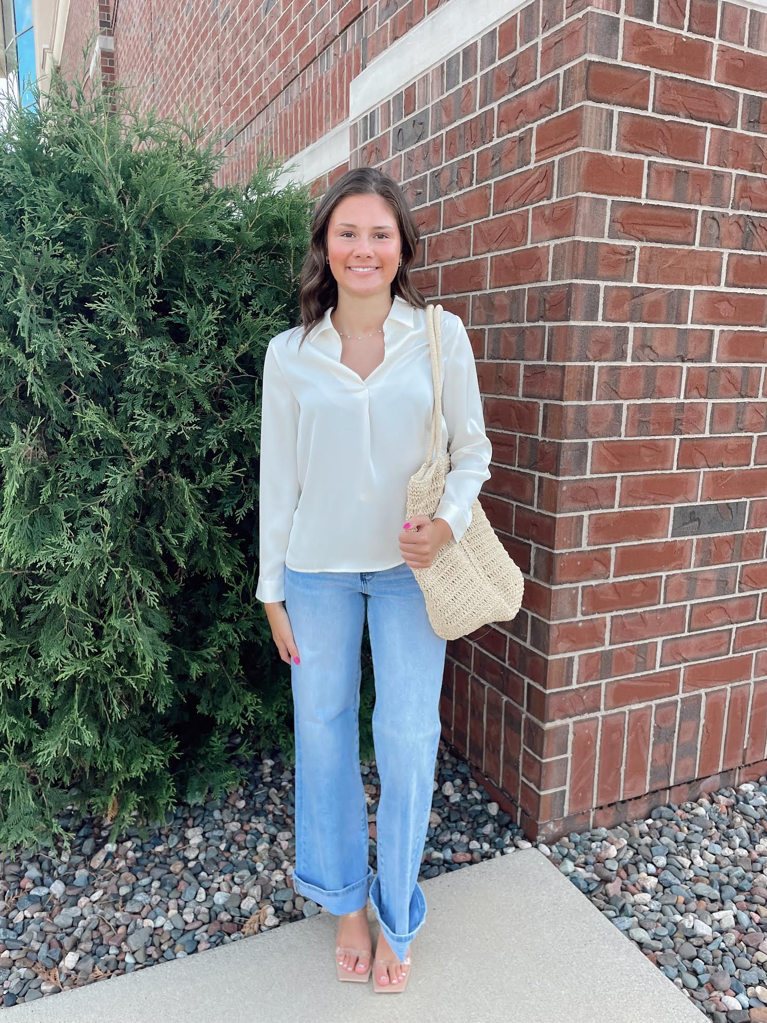 The Believe Me Blouse is a satin dream that adds a playful sparkle to your wardrobe. Its smooth, glossy finish feels as good as it looks, making it the perfect choice for days when you want to shine with effortless charm. Dress it up or keep it casual—this blouse is ready to bring a little fun to your fashion game.
