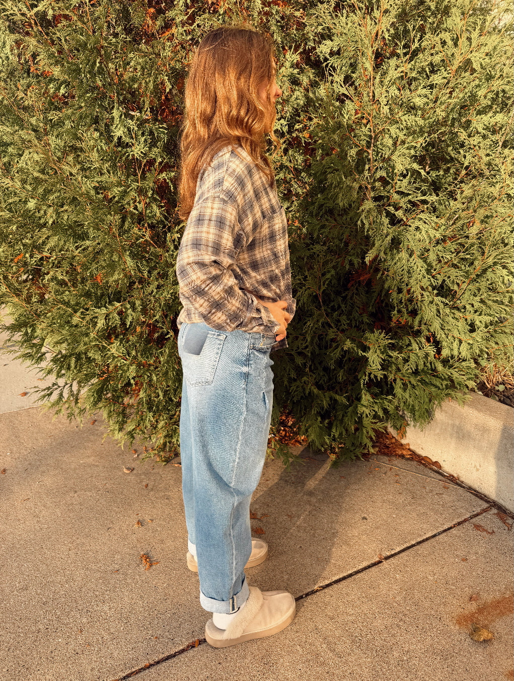 The Catch You Later Plaid Shirt is the perfect mix of cozy and classic. Crafted from soft brushed fabric, this plaid button-up delivers comfort and style you’ll reach for again and again. With its relaxed fit and timeless pattern, it’s easy to wear on its own or layered over your favorite basics. Whether you’re heading out for a casual day or cozying up at home, this versatile piece brings effortless charm to any look.