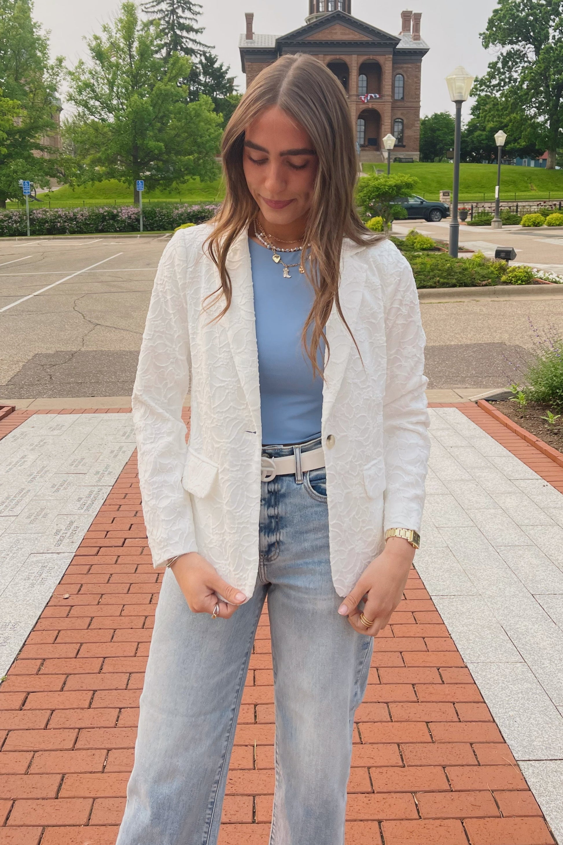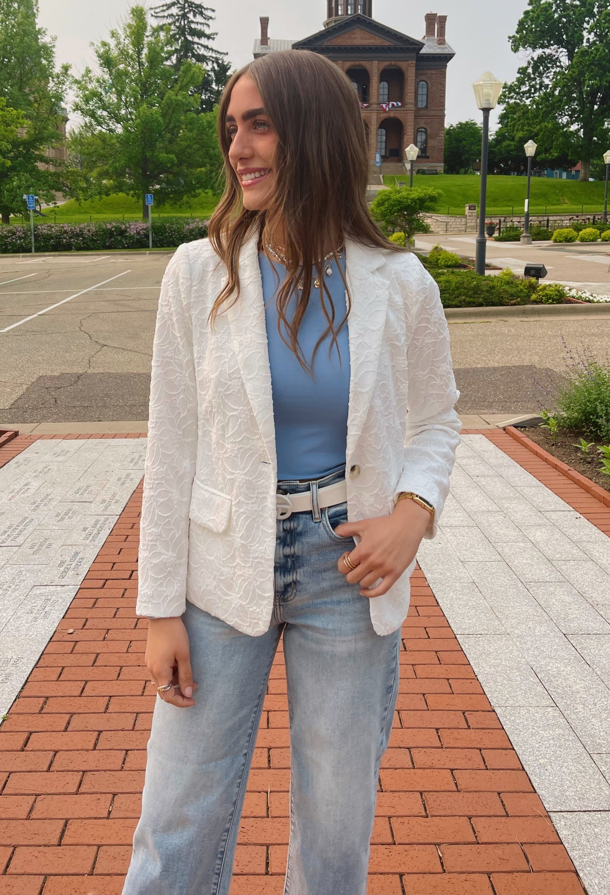 Make a statement with the must-have Eileen Blazer. Elevate any outfit with its stunning design and boost your confidence and style. Step out in fashion-forward flair!