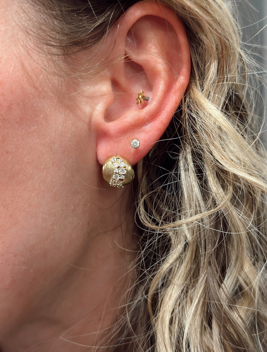 Bring ocean-inspired elegance to your look with the Finn Post Earrings. These studs feature an open shell design with graceful grooved detailing and a trail of sparkling stones for a subtle touch of shimmer. Perfect on their own or paired with the Merrick Hoop Earrings for a playful mix, they make a thoughtful gift for ocean lovers or a coastal bridal party, offering a meaningful and stylish statement.