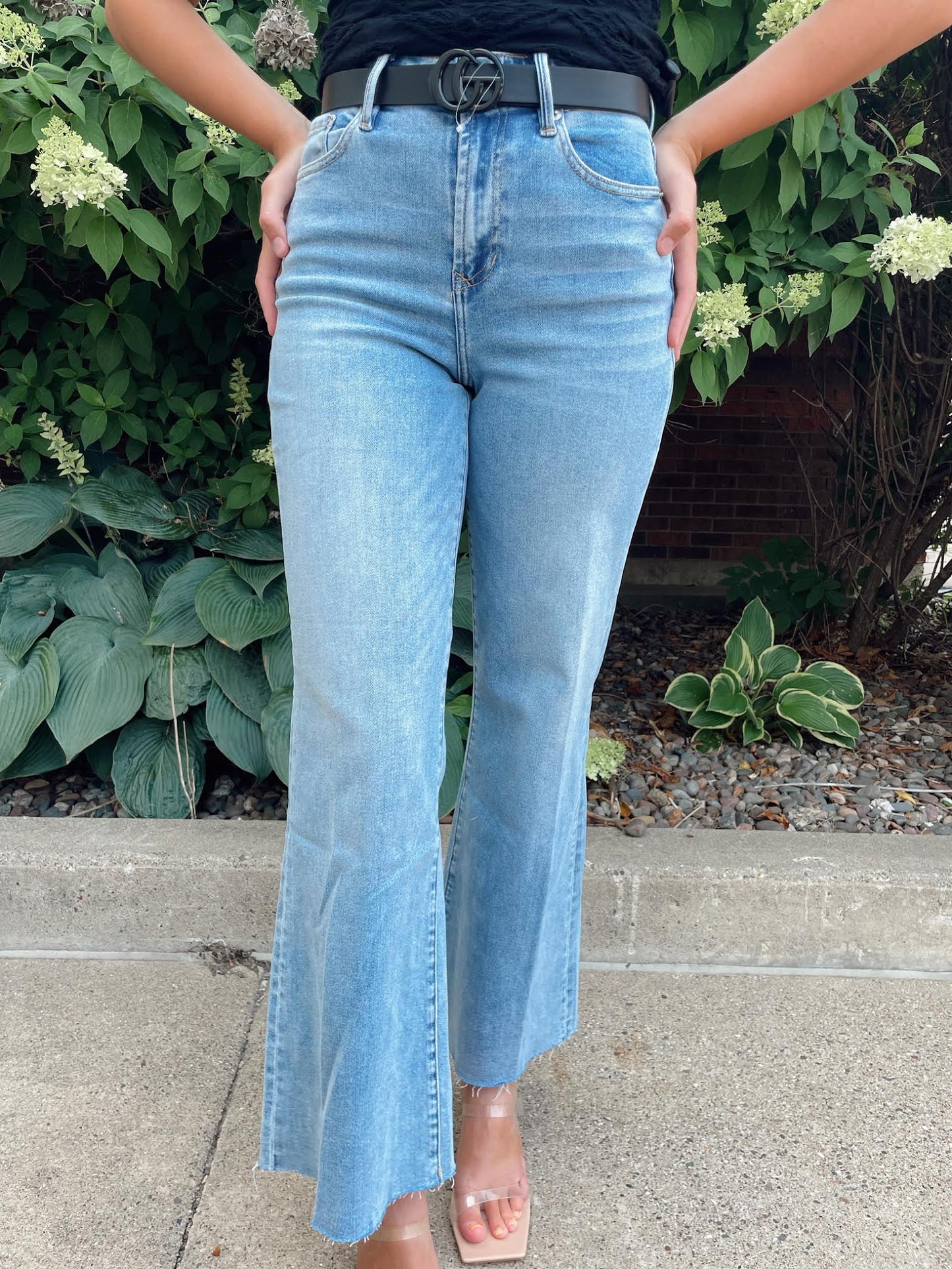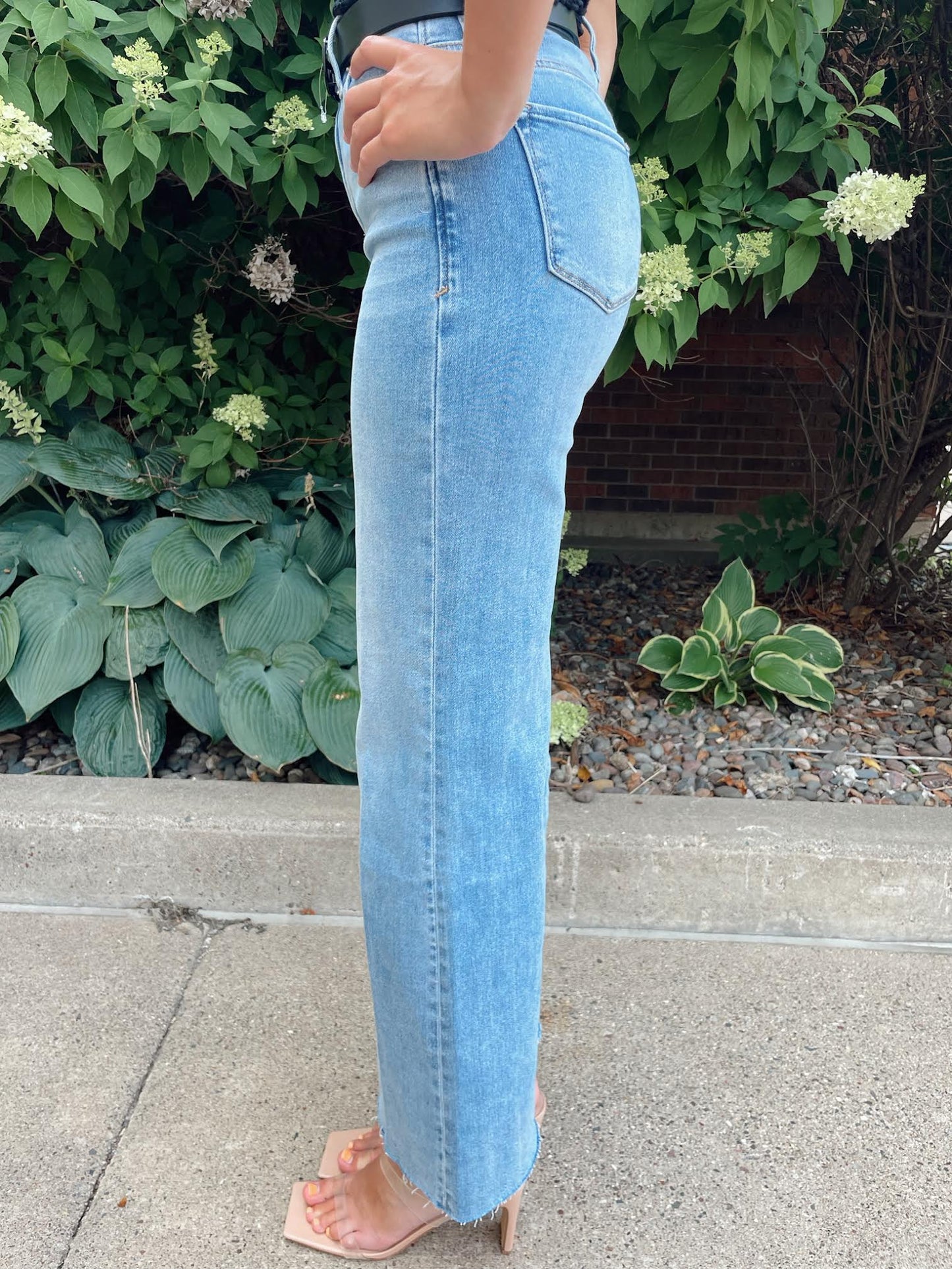 The Fiona Mid-Rise Full Inseam Jeans combine style, comfort, and versatility. Crafted from a balanced blend of cotton, polyester, and spandex, they offer all-day wear with a flattering fit. Featuring a unique cut-off hem, these jeans provide a polished yet modern look that effortlessly transitions from casual to chic for any lifestyle.