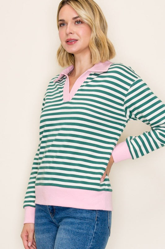 The Gabs Sweatshirt puts a playful twist on a casual classic. Featuring a contrast polo collar and bold stripes, this long-sleeve sweatshirt blends sporty charm with everyday comfort. Made from a soft cotton-blend fabric, it’s perfect for relaxed days when you still want to look effortlessly put-together. Pair it with jeans or joggers for an easy, laid-back look.