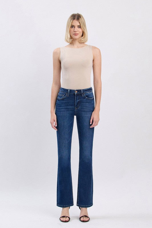 Step into effortless style with our Happy Days High Rise Bootcut Jeans — the perfect blend of comfort and classic design. Crafted from premium comfort stretch denim, these jeans feature a flattering 10" high-rise waist, a finished hem, and a timeless bootcut silhouette that elongates the legs. Designed to hit at full length with a 32" inseam, they’re ideal for dressing up or down. Whether paired with heels or boots, these jeans offer a sleek and versatile look. Model is 5'10" and wears a size 26.