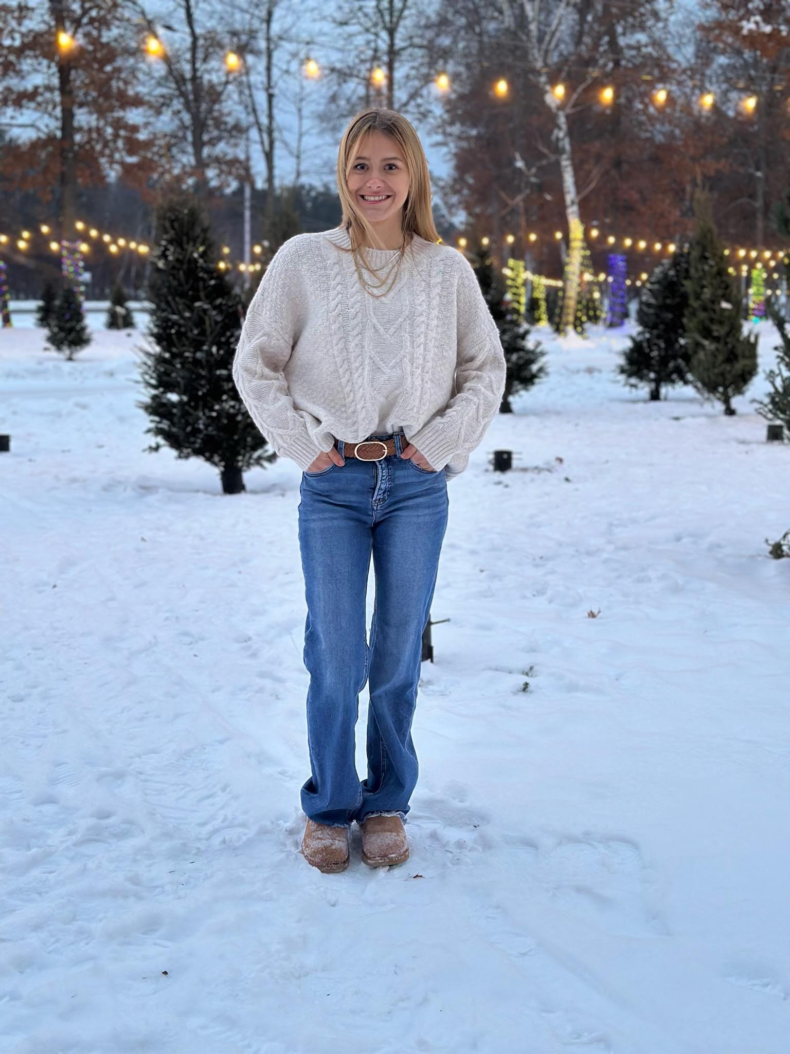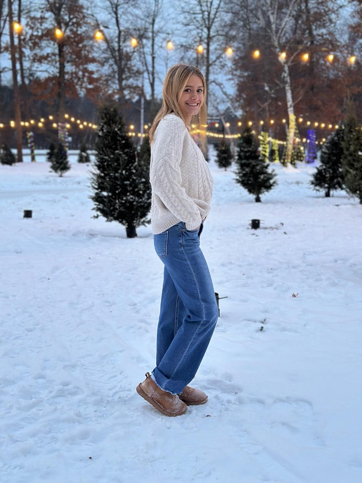 Say hello to your new seasonal staple. The Hello Fall Sweater is a timeless cable knit pullover designed with a cozy, textured weave for ultimate warmth and comfort. With a relaxed fit and ribbed crew neckline, cuffs, and hem, it’s the perfect throw-on piece for crisp mornings, cozy nights, and everything in between. Model is 5'8" and wearing a size S/M.