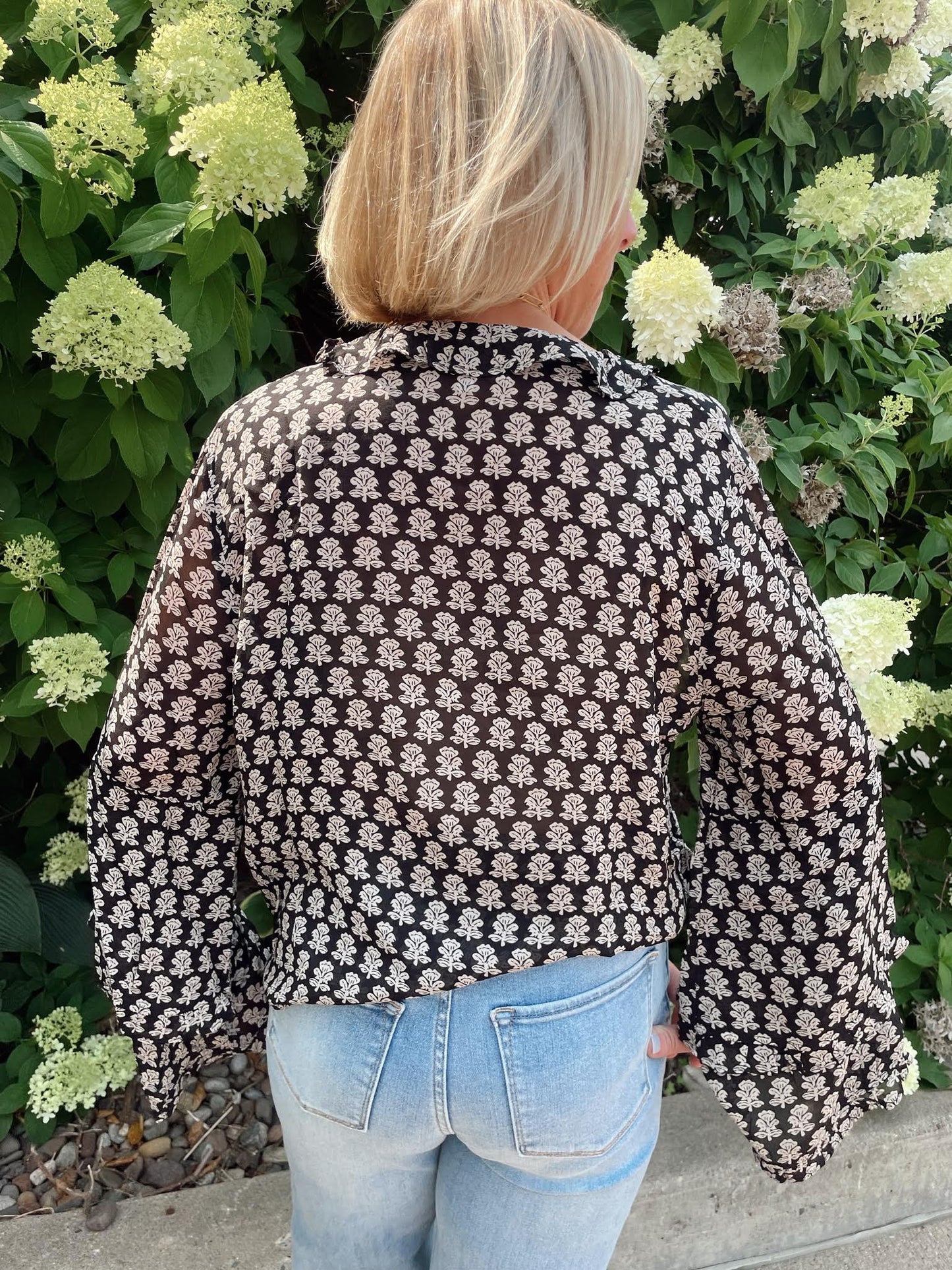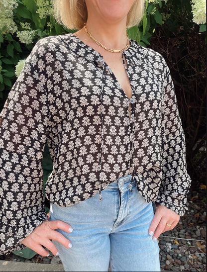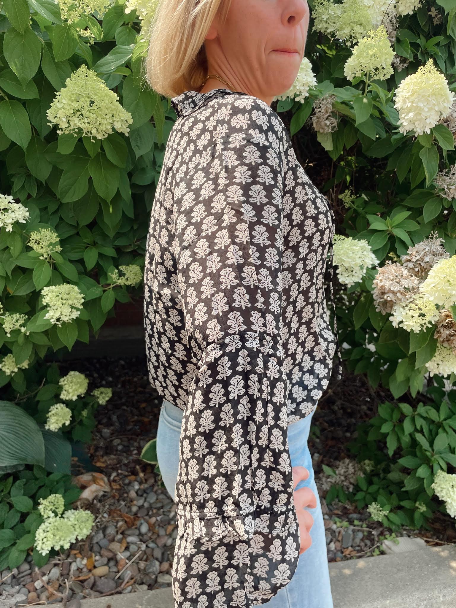 Romantic with a modern twist, our Jacquel Blouse brings soft structure and standout detail to your wardrobe. Featuring a delicate all-over pattern and elegant ruffle accents, this blouse adds effortless charm to any look. The long sleeves offer coverage with a lightweight feel—perfect for transitional seasons or layering. Pair it with denim for casual outings or tuck it into tailored trousers for a polished, feminine finish.