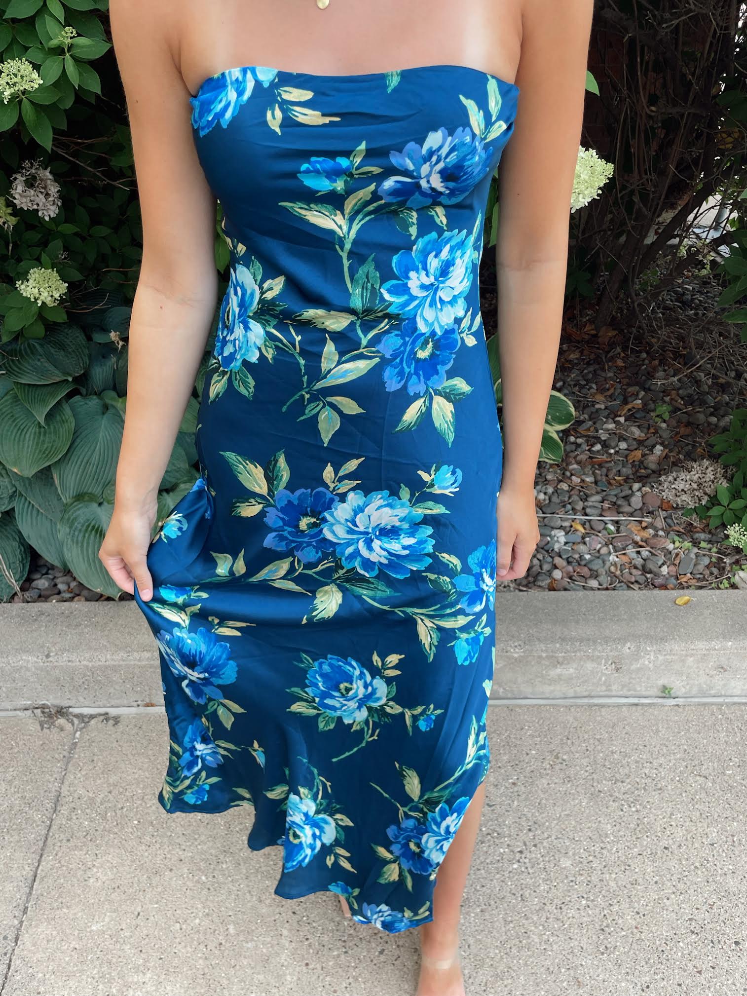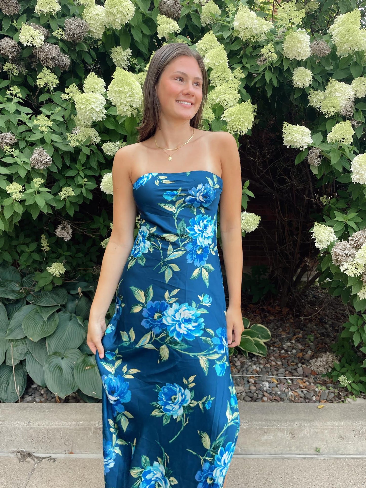 The Jaida’s Fav Maxi is a stunning strapless floral maxi designed for effortless elegance. Featuring elastic at the top to ensure a secure, no-slip fit, this flowy dress combines comfort and style for an easy, breezy look perfect for any occasion.