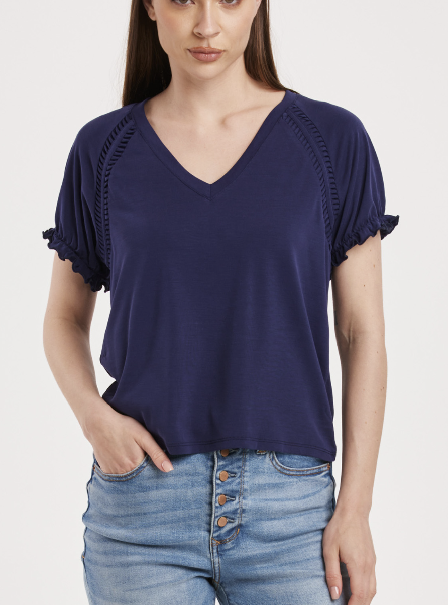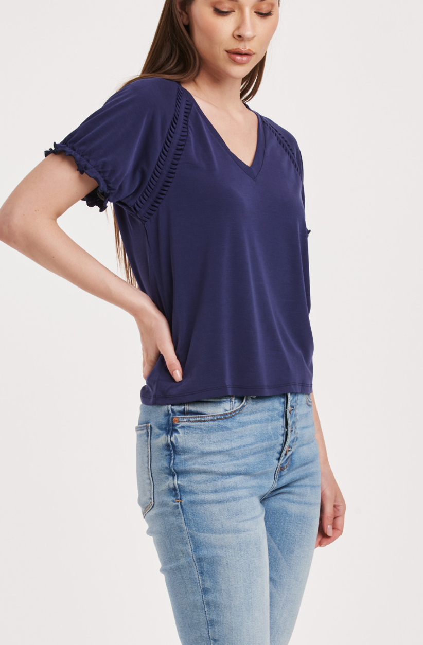 Embrace effortless style with the Janara Top. Its simple design is enhanced by a playful sleeve, adding a touch of fun to any outfit. Dress it up or down, this top is perfect for any occasion. You'll love how easily it adds a bit of personality to your wardrobe!