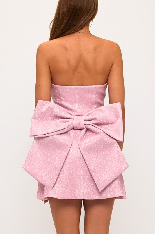 Make an unforgettable entrance in the Kathleen Mini Dress, crafted from bonded shiny fabric for a sleek, luminous finish. This chic tube-neck mini keeps the silhouette clean and modern, while the detachable back bow adds a dramatic, feminine touch that lets you switch up your look. Fully lined for comfort and finished with a convenient side zipper, this dress is perfect for parties, special occasions, or any night you want all eyes on you. Final sale.