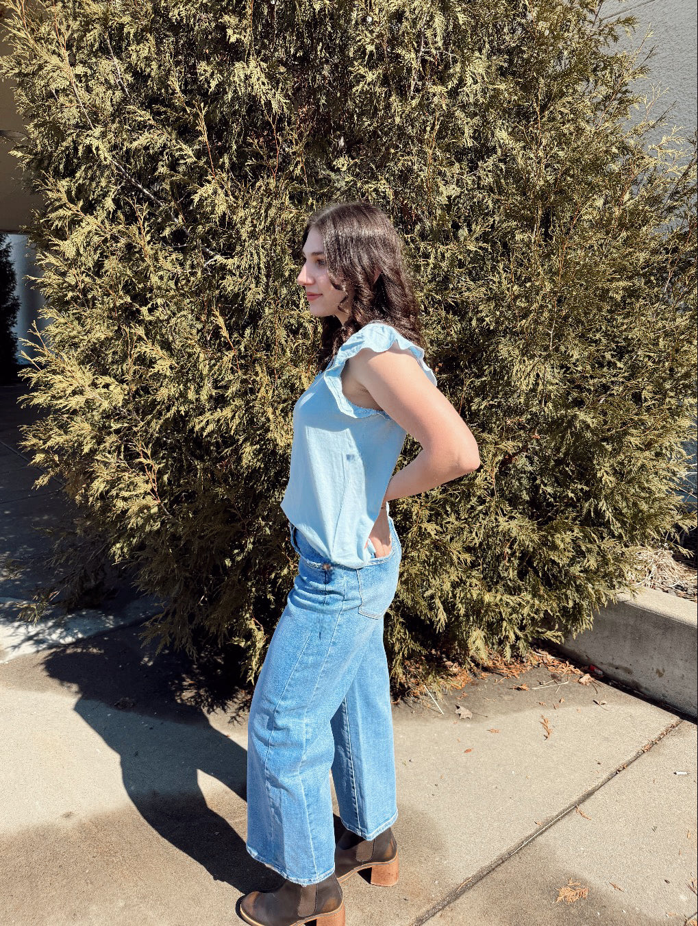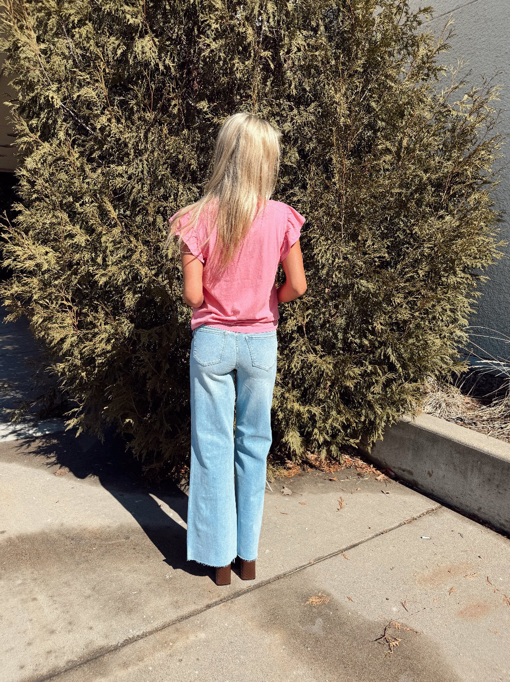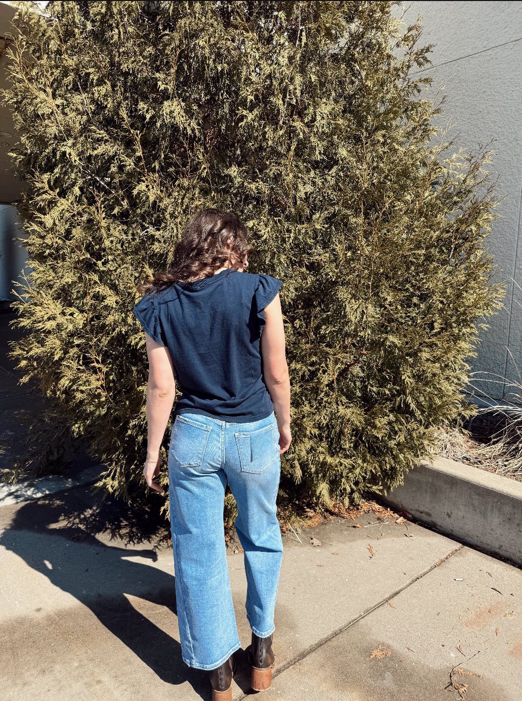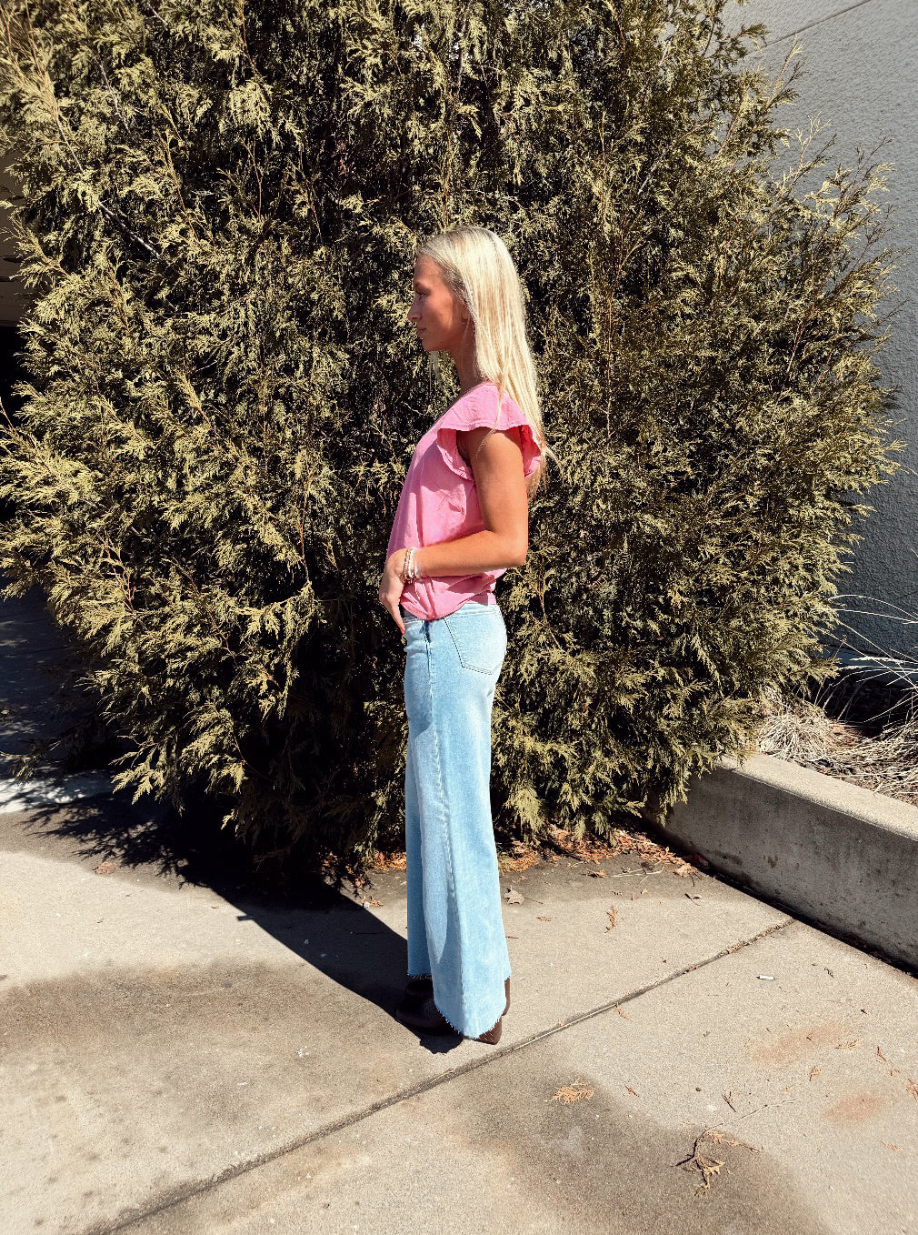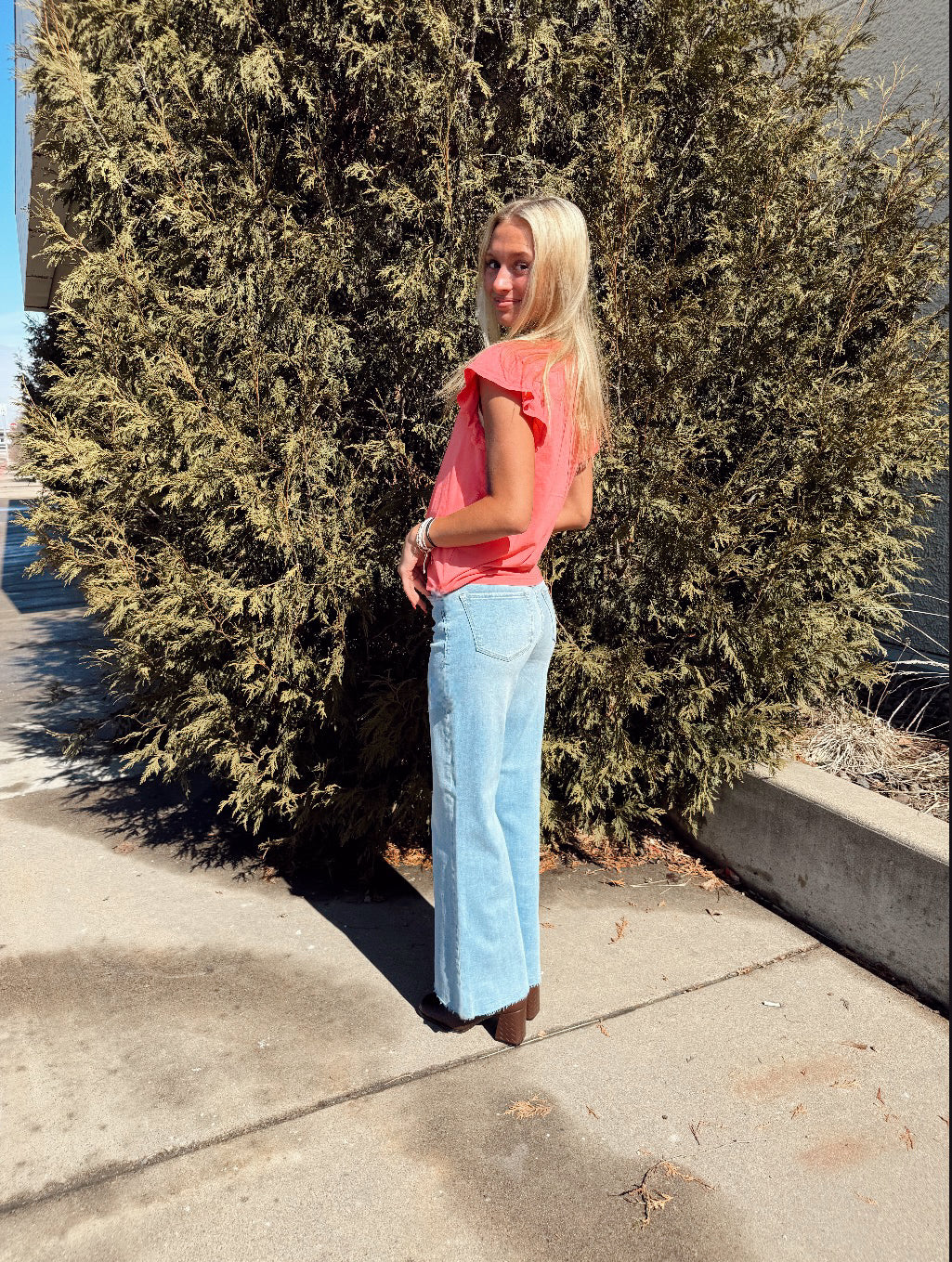 This V-neck flutter sleeve top is the definition of effortless charm. Designed with a flattering neckline and soft, airy sleeves, it brings movement and a touch of romance to any outfit. The easy silhouette makes it perfect for pairing with denim, skirts, or tailored pants for a look that feels put-together without trying too hard.
