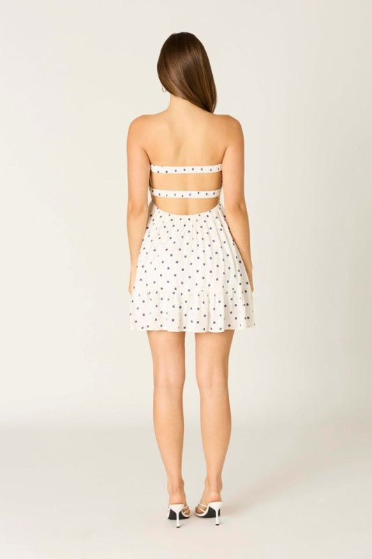 The Kitten Strapless Romper is a sweet and effortless warm-weather staple. Designed with a flattering strapless neckline and a playful dotted print, this romper features a softly structured bodice and a breezy skirted silhouette for all-day comfort. Made from a lightweight rayon-linen blend with a smooth polyester lining, it’s perfect for sunny days, casual outings, or weekend plans when you want an easy yet polished look.