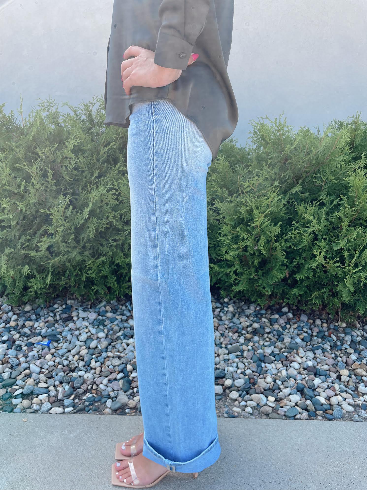 The Lyla Tummy Control High Rise Jeans combine a flattering fit with timeless style. Designed with a wide cuffed hem that can be released for added length, these jeans offer both versatility and comfort. The high-rise waist provides gentle support and shaping, while the soft stretch denim ensures an easy, confident fit. Perfect for pairing with your favorite tops and heels, these jeans are a must-have for an effortlessly polished look.