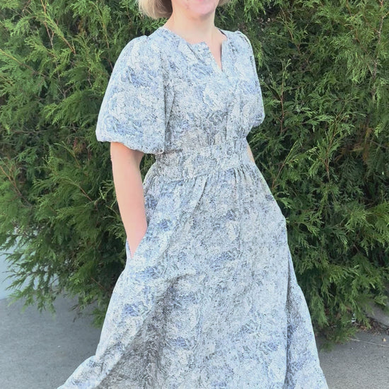 Effortlessly elegant and perfect for any occasion, the Mariah Maxi Dress features a beautiful woven print and a flattering tiered design. The half balloon sleeves add a touch of romance, while the elastic waistband ensures a comfortable, figure-flattering fit. Thoughtfully designed with convenient side pockets, this dress blends style and functionality. Crafted from 100% polyester, it's lightweight, breathable, and easy to care for. Model is 5'8" and wearing a size Small.