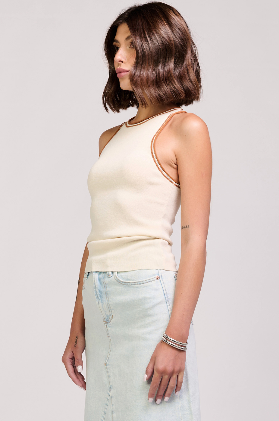 The Mariah Tank brings a fun twist to your wardrobe with its delicate crochet trim detailing. Perfect for layering or wearing solo, this playful tank adds a touch of charm and breezy style to any outfit. Embrace effortless cool and let your look shine with this easygoing essential.