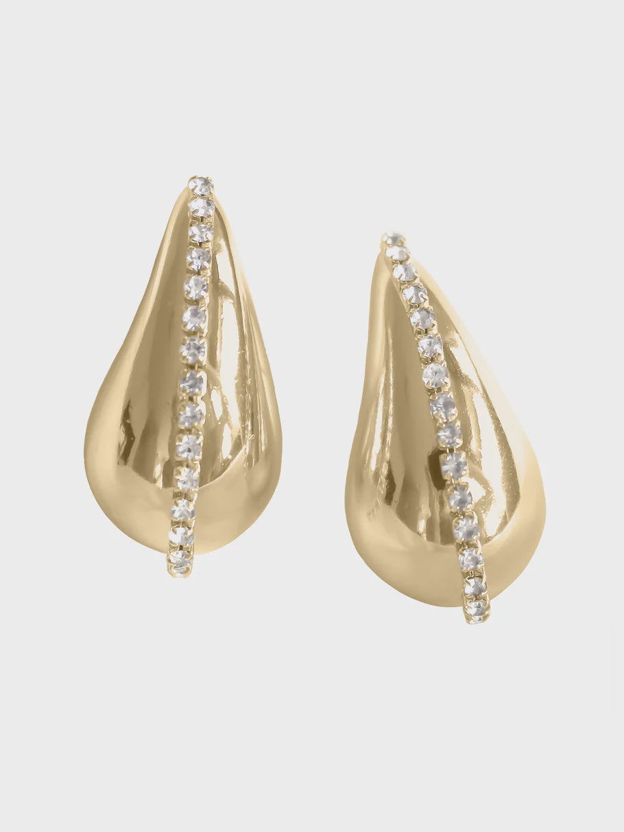 The Rhine Teardrop Earrings offer understated glamour with a single line of sparkling gems set in an elegant teardrop shape. Their refined silhouette makes them perfect for elevating everyday looks or adding a subtle shine to evening wear. Crafted to be gold filled for durability, hypoallergenic for sensitive skin, and final sale for one-of-a-kind charm. final sale.