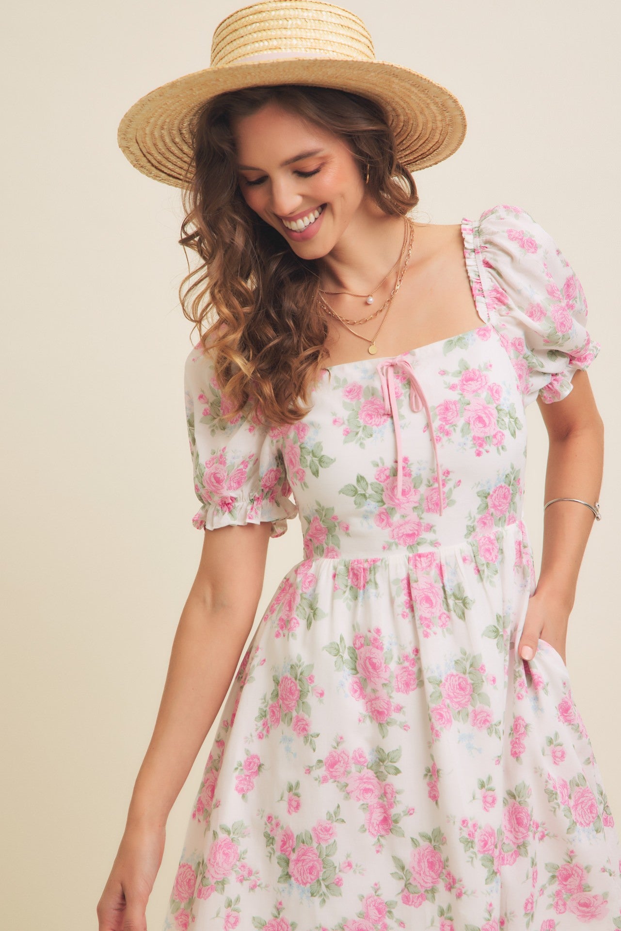 The Romantica Dress is a charming floral piece designed with playful bubble sleeves and a flattering silhouette. Featuring convenient side pockets and a soft, flowy drape, this dress blends feminine romance with everyday comfort—perfect for garden parties, brunch dates, or a simple stroll in the sun.