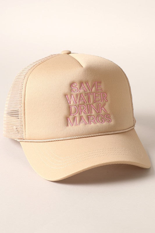 Make a bold (and slightly cheeky) statement with our "SAVE WATER DRINK MARGS" trucker hat. Designed with a classic 6-panel structure and a breathable mesh back, this hat brings together comfort, style, and personality. Whether you're poolside, at a backyard BBQ, or just out chasing the sun, this cap is your go-to for laid-back vibes and good times. Featuring an adjustable snapback closure for a customizable fit, it’s made to suit everyone. Cheers to margaritas and keeping things cool—literally. final sale.