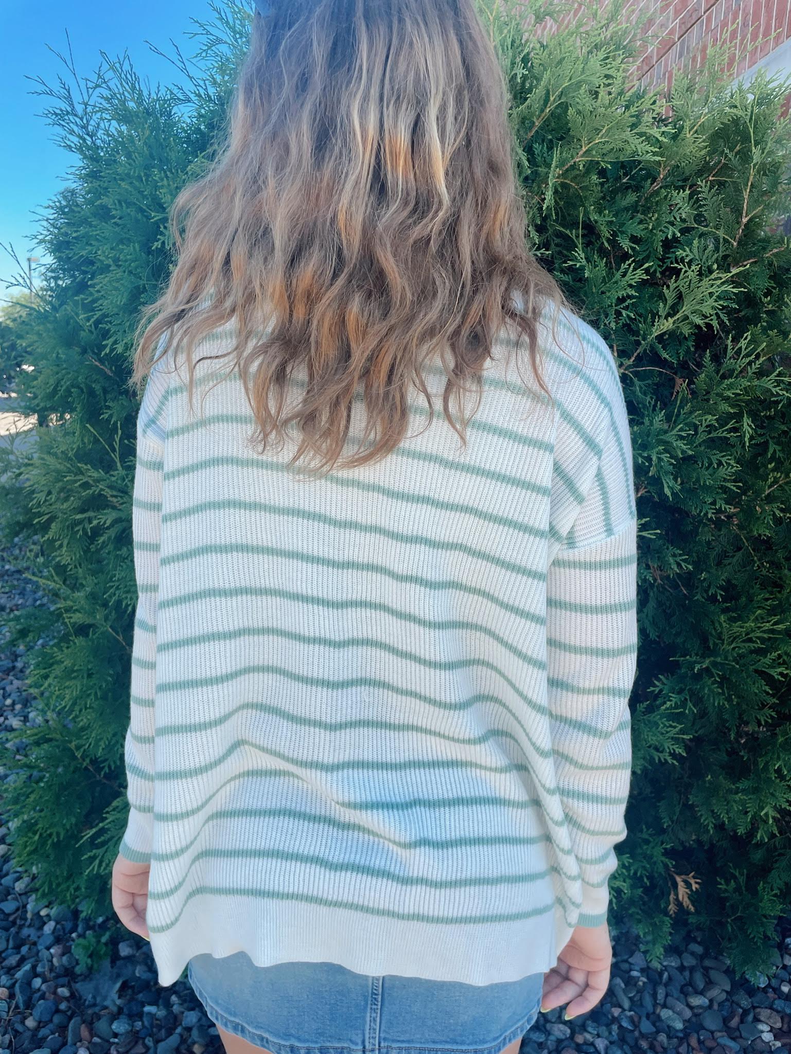 The Sue Striped Cardi is a timeless layering piece that blends comfort and casual style with ease. Made from a cozy wool-blend knit, this open-front cardigan features bold horizontal stripes for a classic yet playful look. Its long sleeves and drop shoulder design give it a relaxed silhouette, making it ideal for layering over everything from tees to turtlenecks.