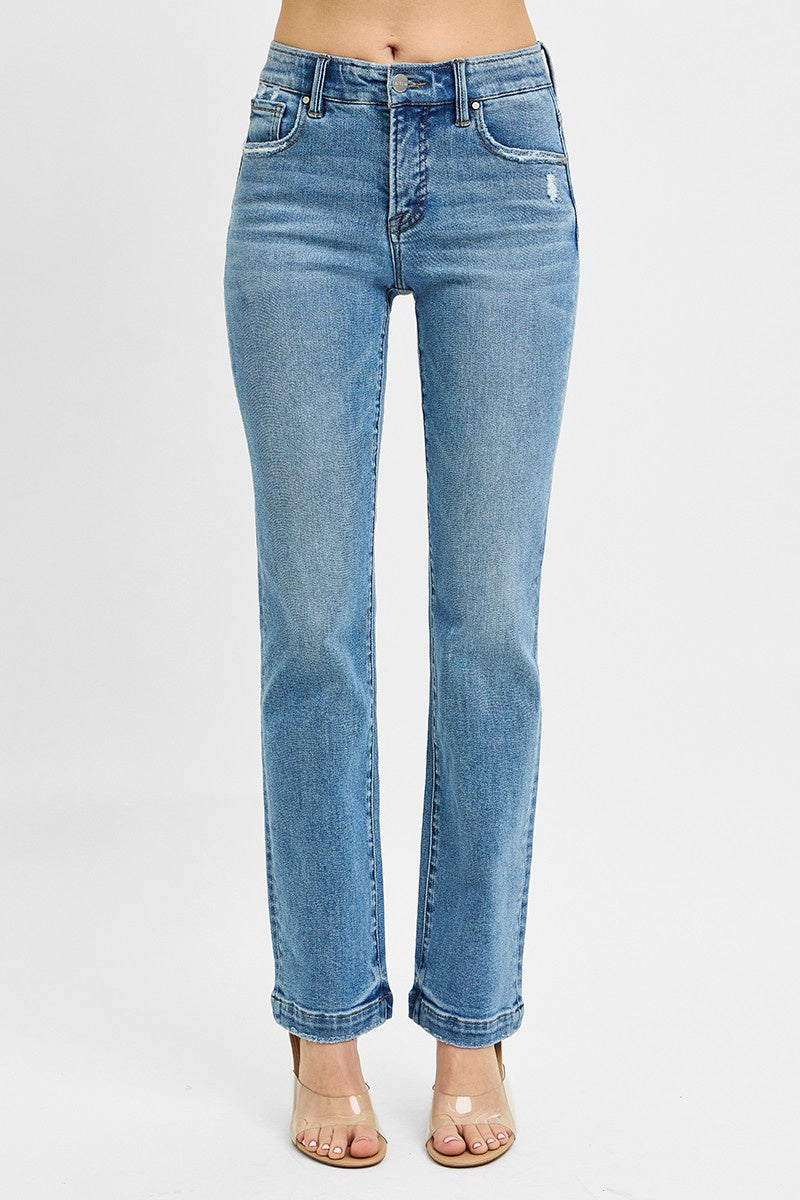 Effortlessly slay with Taylen TC MR Straights! Featuring a tummy control elastic band and mid-rise fit, these straight jeans will flatter your figure while providing all-day comfort. Perfect for any occasion, get ready to turn heads with these must-have jeans.