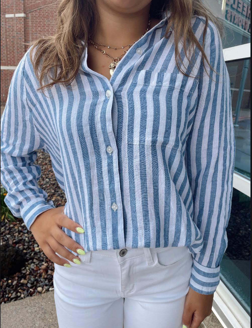 Classic tailoring meets effortless ease in The Perfect Line Top. Made from a breathable textured linen-rayon blend (55% linen, 45% rayon), this lightweight button-up features a crisp collar, long sleeves, and a functional card pocket for a touch of utility. With a regular fit and a flattering 27 1/4" length from shoulder, it's finished with a heavy soft wash for that naturally lived-in feel. Perfect for styling tucked, layered, or worn loose—this is the shirt that truly lives up to its name.