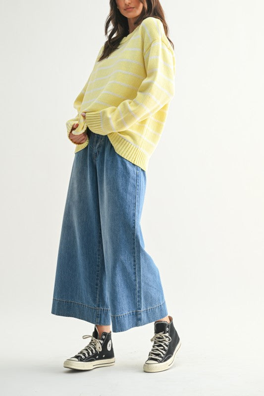 The Travis Striped Sweater is your go-to for cozy, laid-back style with a touch of classic charm. This oversized knit sweater features bold, timeless stripes and is designed with comfort in mind. A ribbed hem and ribbed crew neckline add subtle texture and structure, making it perfect for layering or wearing on its own. Soft, relaxed, and effortlessly stylish, it’s the ideal piece to keep you warm while looking cool.